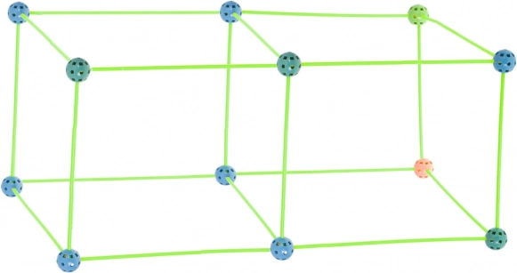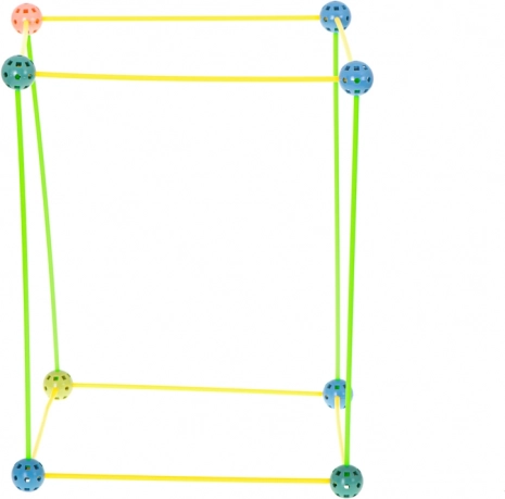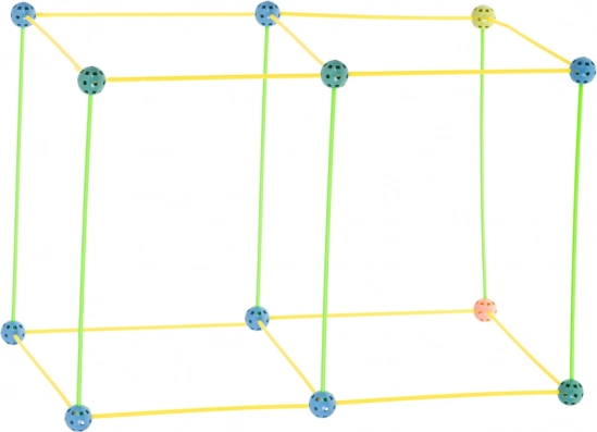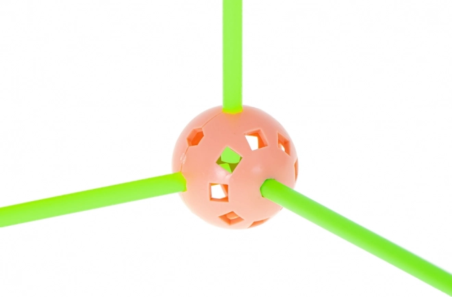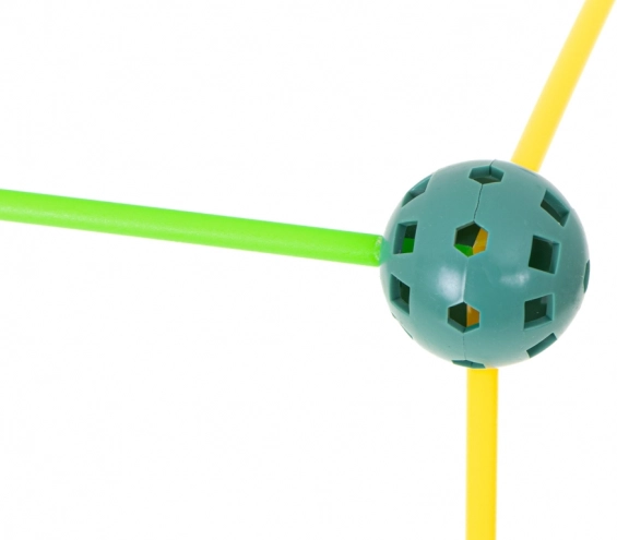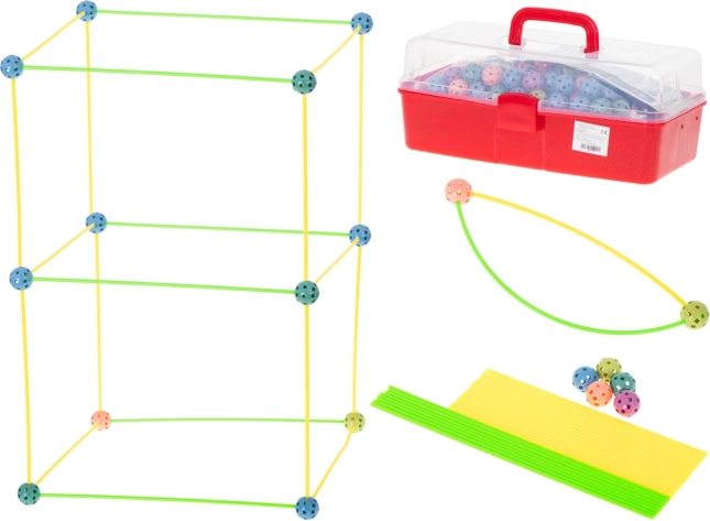 Ta konstrukcijski komplet združuje dolge plastične paličke in trpežne perforirane krogle z mnogimi odprtinami za enostavno zaskočitev. Otroci lahko ustvarjajo 3D strukture – od hišk in šotorov do tunelov in trdnjav – domišljija nima meja. Deli so lahki, varni in večkrat uporabni.