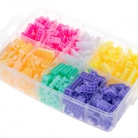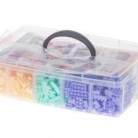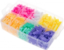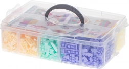 Prozoren zaboj s predelki omogoča enostavno shranjevanje in razvrščanje blokov po barvah.