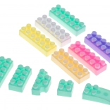 Lepe pastelne barve vabijo otroke k igri in so idealno darilo. Bloki so pakirani v priročnem plastičnem zaboju s predelki za enostavno shranjevanje in razvrščanje po barvah.