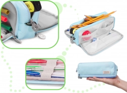 Ta vsestranski etui je idealen za šolo, univerzo in pisarno. Ponuja 3 ločene komore na zadrgo, v stranskih delih pa najdete tudi majhne žepke in elastične gumice za pritrditev drobnih predmetov. Sodobna podoba bo navdušila tako otroke kot odrasle.