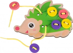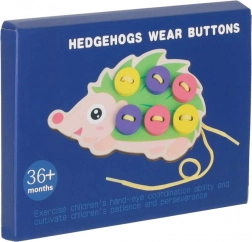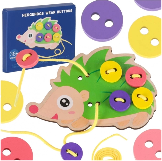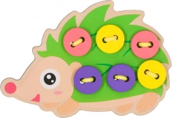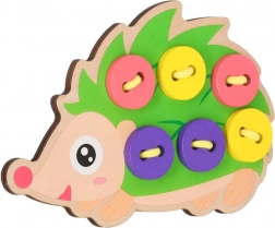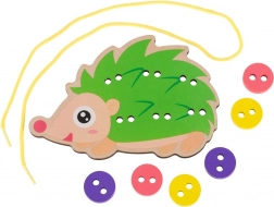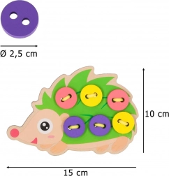 Ta prepletalni ježek je idealen pripomoček za prve korake v vezanju in “šivanju”. Otroci prepletajo vrvico skozi luknjice in pritrjujejo barvne gumbe na “bodice” ježka. Vesele, žive barve naravno vabijo k igri ter učijo razlikovanja barv in oblik.