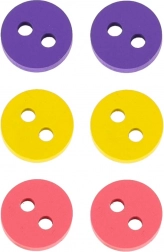 Komplet barvitih gumbov in dolga vrvica spodbujata ustvarjanje različnih vzorcev, štetje in učenje barv.