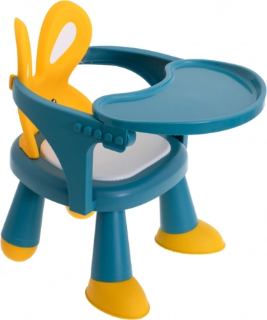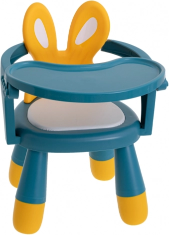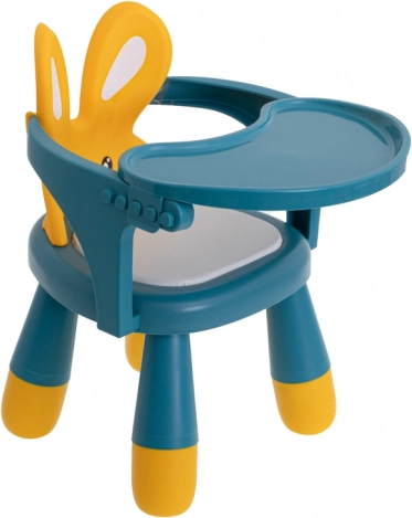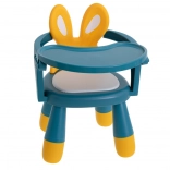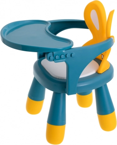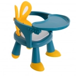 Ta večnamenski stolček z zabavnim zajčjim dizajnom motivira otroke k umirjenemu sedenju pri hranjenju in ustvarjanju. Ergonomska oblika podpira pravilno držo telesa, visoko naslonjalo z »ušeski« nudi prijetno oporo, udoben sedež pa zagotavlja komfort pri daljšem sedenju.