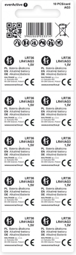 Zanesljive gumbne baterije everActive LR41 zagotavljajo stabilno napetost 1,5 V za širok nabor manjše elektronike. Idealne za igrače, kalkulatorje, ure, LED okraske, merilne naprave in medicinske pripomočke. Praktično pakiranje 10 kos v blisterju in združljivost z oznakami LR736/AG3 zagotavljata enostavno zamenjavo.