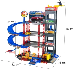 Večnadstropna parkirna garaža je opremljena z več nivoji za parkiranje in igro, kar omogoča shranjevanje ne le priloženih avtomobilčkov, temveč tudi drugih vozil vašega otroka. Ročno upravljano dvigalo nudi realističen občutek, medtem ko bencinska postaja in pralnica povečujeta interaktivne možnosti.