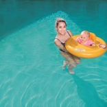 Napenljivi otroški sedež za vodo je popolna pripomoček za starše, ki želijo svoje otroke seznaniti z vodo že v zgodnji starosti. Primeren je za uporabo ne le v bazenih, temveč tudi v morju ali jezeru. Okrogla oblika zagotavlja dobro plovnost in stabilnost, kar otroku pomaga ohranjati ravnotežje in se varno držati na gladini. Za večje udobje in varnost je sedež opremljen z vstavljenimi »hlačkami«, ki otroka držijo in preprečujejo prevrnitev. Veselo in živahno barvno oblikovanje z motivom raka pritegne otrokovo pozornost in spodbuja k vodnim igram.