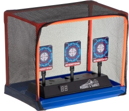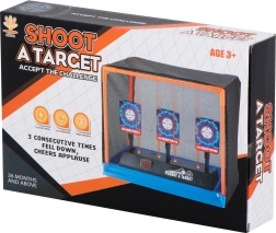 Elektronska tarča za streljanje je odlična igrača za otroke in odrasle, ki želijo trenirati natančnost in koordinacijo oko-roka. Po zadetku se cilji preklopijo, po zrušitvi vseh treh se samodejno dvignejo, na LED-zaslonu pa se prišteje točka. Primerno za penaste puščice in kroglice.