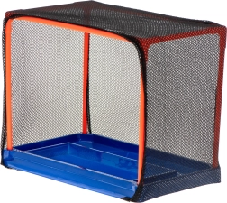 Vzdržljiva mreža z oranžnim okvirjem ujame penaste naboje in kroglice. Igrajte varno tudi v notranjih prostorih in brez truda ohranjajte red.