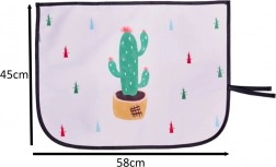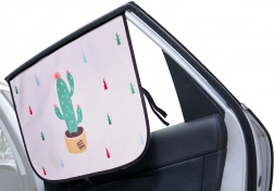 Praktična in varna zaščita za potovanja z otroki in odraslimi. Dvoslojna poliestrska tkanina z motivom kaktusov zagotavlja popolno zatemnitev, blaži bleščečo sončno svetlobo in preprečuje pregrevanje vozila. Na notranji strani je napis »Go out and enjoy the sunshine« na črnem ozadju.