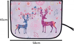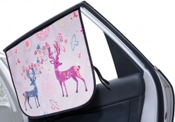 Ta dvoplastna magnetna zavesica za bočno okno avtomobila prinaša takojšnje olajšanje pred ostrim soncem in vročino. Na eni strani je barvni motiv z jeleni, na drugi strani kontrastni napis »Go out and enjoy the sunshine« na črnem ozadju. Zahvaljujoč kakovostnemu poliestru je senčnica vzdržljiva, enostavna za čiščenje in zagotavlja popolno zatemnitev.