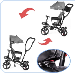 Sedež lahko obrnete v smeri ali nasproti smeri vožnje. Zahvaljujoč potisnemu ročaju in prostemu teku zlahka prevzamete krmiljenje in prilagodite vožnjo trenutnim potrebam otroka.