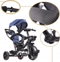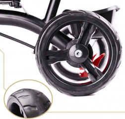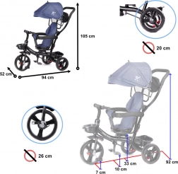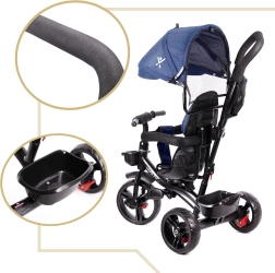 Za maksimalen nadzor je tu vrtljiv sedež 360°, ki omogoča vožnjo obrnjeno proti staršu ali v smeri vožnje. Prosto kolo (prosti tek) omogoča staršu prevzem pogona z enim stikalom. Brezzračna kolesa zagotavljajo udobje kot napihljiva, vendar brez skrbi z zračnim tlakom in tveganjem predrtja. Ne manjka tristopenjska zložljiva strešica z mrežico, odstranljiva vodilna palica s penasto oblogo in praktični shranjevalni dodatki.