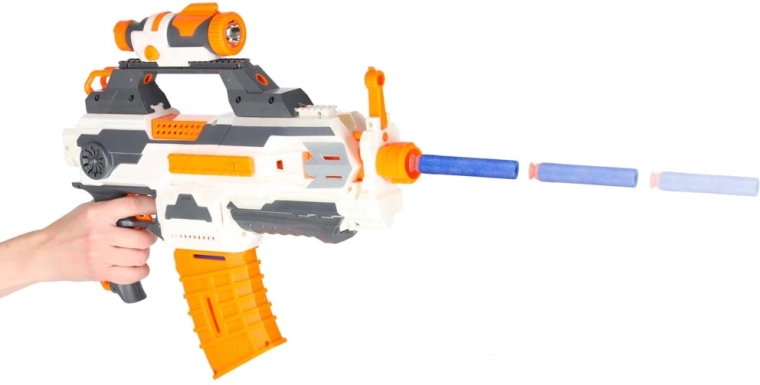 Igra s penastimi blastrji spodbuja timsko delo, koordinacijo in motoriko prstov pri polnjenju nabojnikov. Veliko darilno pakiranje razveseli že ob odpiranju – zabava za otroke od 6 let dalje in odrasle.