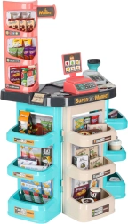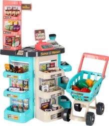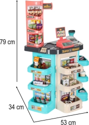 Pripravite se na nakupe! Ta prostoren otroški supermarket z realističnimi funkcijami bo navdušil vsakega malega trgovca. Otroci se lahko preizkusijo v vlogi prodajalca in kupca, skenirajo izdelke, plačajo s kartico ali z gotovino ter vozijo nakup v priloženem vozičku. Igra trgovine naravno razvija socialne veščine, domišljijo in uči otroke pravil vsakdanjega življenja.