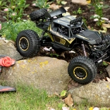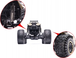 Ta robustni rock crawler dolžine 51 cm je ustvarjen za igrivo premagovanje ovir. Velika gumijasta kolesa z dezénom in vzmetno vzmetenje zagotavljajo odličen oprijem in stabilnost v terenu. Kovinska »karoserija« povečuje odpornost pri zahtevni vožnji, zato je idealen tako za začetnike kot za izkušene navdušence.