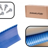 Avtomobilu dodajte športni značaj in hkrati zaščitite plastične dele pred praskami, odkruški in drobnimi razpokami. Univerzalni spojler/letvico je mogoče poljubno skrajšati in prilagoditi obliki odbijača. Modra izvedba v karbonskem videzu optično zniža sprednji del vozila in osveži celoten dizajn.