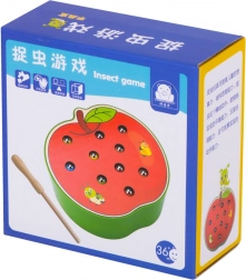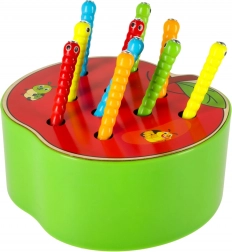 Odkrijte privlačno magnetno igro v obliki jabolka, ki otroke zabava in hkrati razvija. Naloga je z magnetno paličico “ujeti” gosenice ter jih previdno izvleči iz odprtin – v zahtevnejši različici pa jih vrniti nazaj. Preprosta zasnova in naravni materiali spodbujajo samostojnost in radovednost otrok.