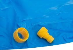 Ta velika vodna podloga je idealna za vroče dni – otroke zabavajo vodni curki, ki špricajo po obodu, hkrati pa prijetno hladijo. Dovolj je, da priključite običajno vrtno cev in višino špricanja uravnavate s tlakom vode. Zaradi kompaktnega zlaganja zavzame pri shranjevanju zelo malo prostora.