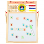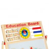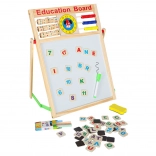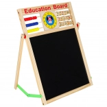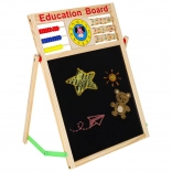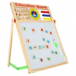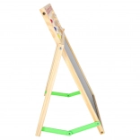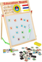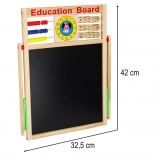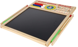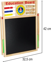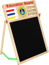 Ta večnamenska tabla je idealna za učenje doma in v otroški sobi. Črna stran je namenjena risanju in pisanju s kredo, bela magnetna stran pa za pisanje s flomastrom in pritrjevanje magnetov. Stabilna lesena konstrukcija zagotavlja varno in udobno uporabo.