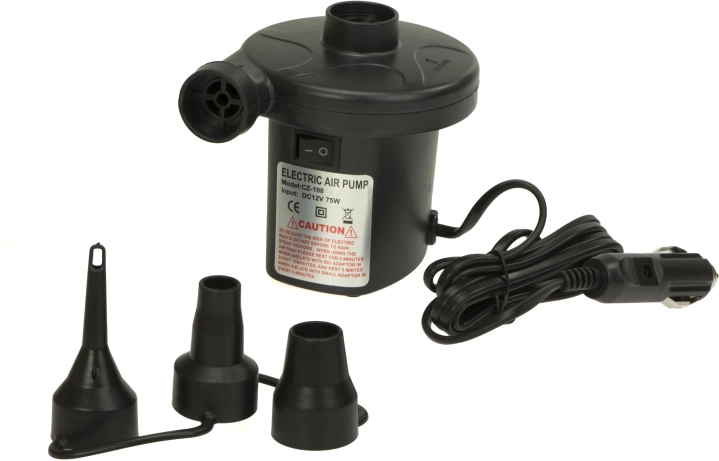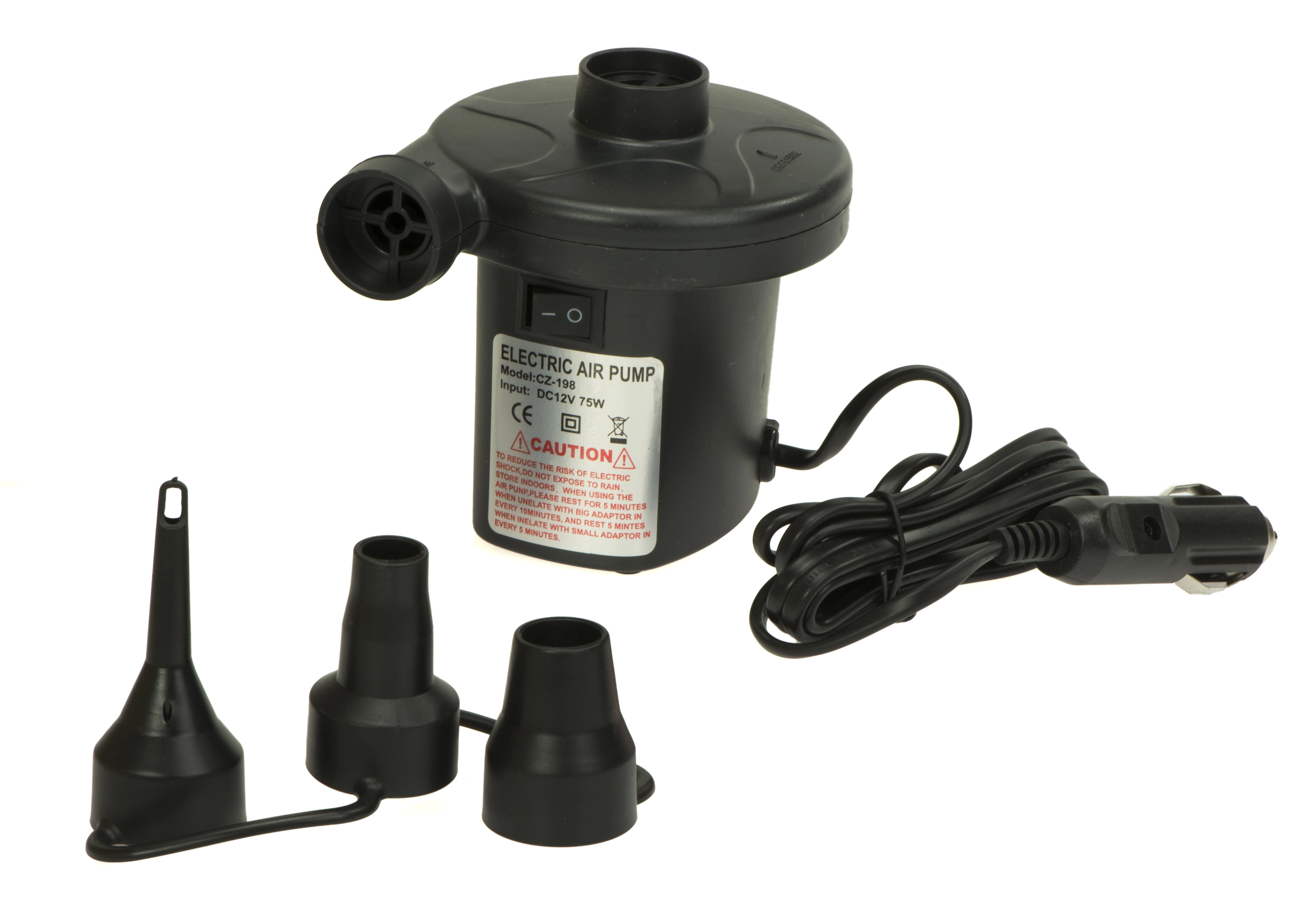 Odstranljiva opora omogoča uporabo vzmetnice tudi samostojno – na travi ali ob vodi. Hitro napihovanje in izpihovanje zagotavlja priložena 12 V električna črpalka za priklop v vžigalnik. Celoten komplet preprosto shranite v praktično torbo.
