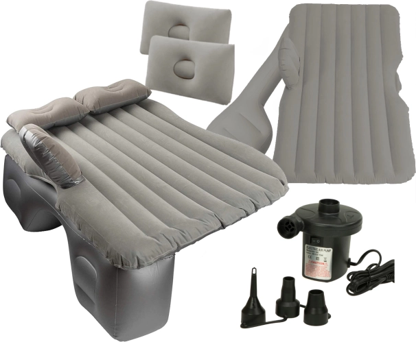 Uživajte v udobju na poti s praktično napihljivo avtomobilsko vzmetnico dimenzij 130 × 80 cm. Zadnje sedeže spremeni v udoben prostor za spanje, ima mehek velurjast površinski sloj in jo zahvaljujoč električni črpalki na vtičnico za vžigalnik napihnete v hipu. V kompletu je odstranljiva opora za stabilno namestitev, 2 blazinici, torba in komplet za popravilo.