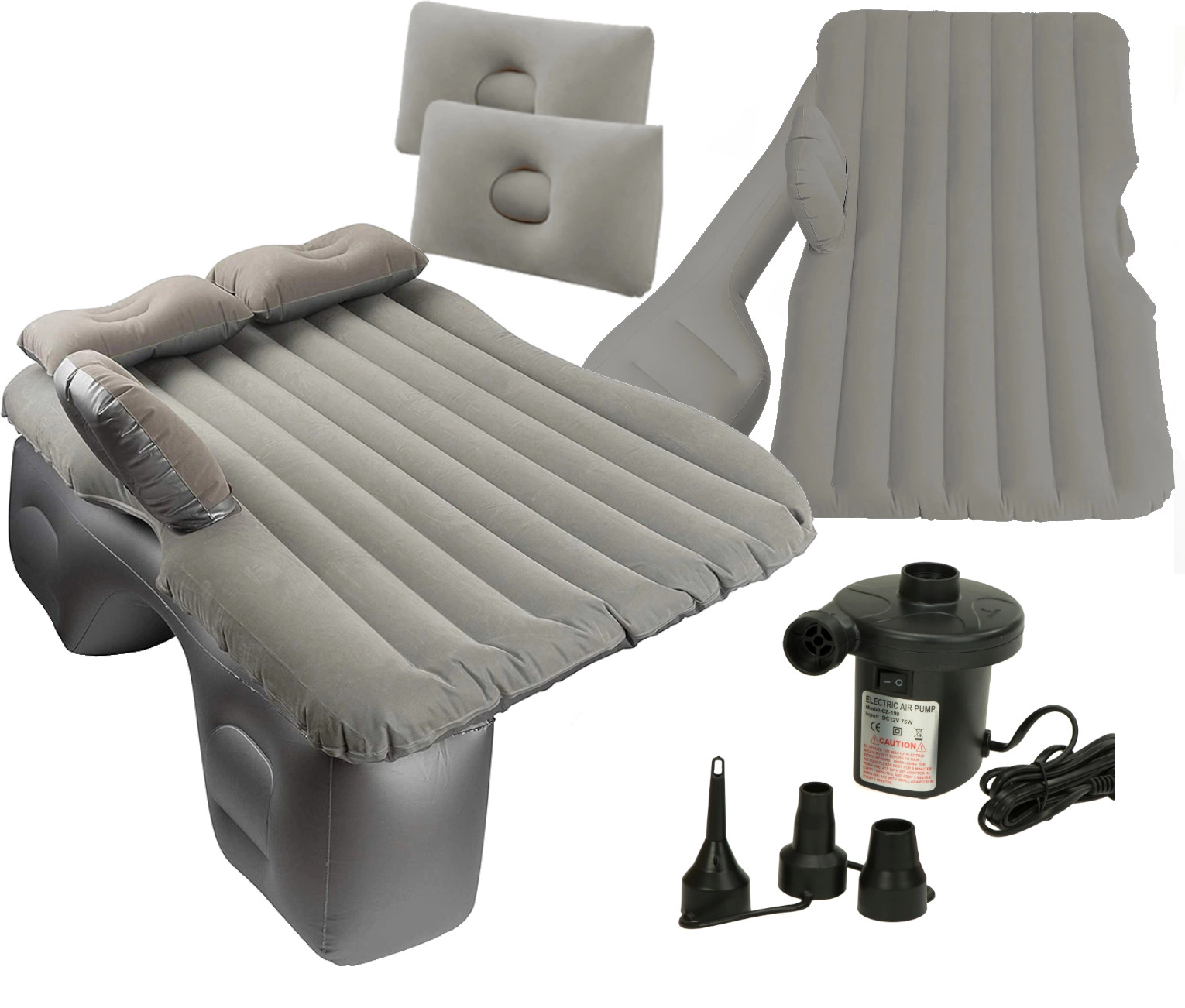 Električna črpalka z napajanjem prek avtomobilskega vžigalnika omogoča hitro napihovanje in izpihovanje. V paketu najdete tudi dve napihljivi blazinici, praktično torbo za enostavno prenašanje in vzdrževanje ter komplet za popravilo za nepredvidene situacije.