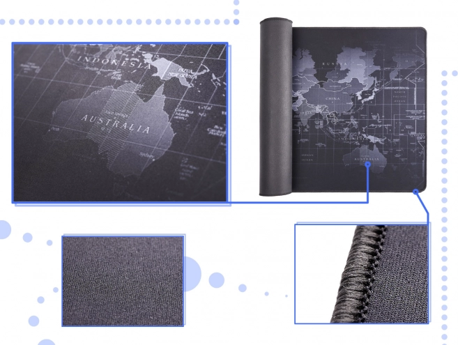 Odkrijte spoj dizajna in funkcionalnosti. Ta velika podloga za mizo z elegantnim motivom zemljevida sveta ščiti delovno površino pred praskami in zagotavlja nemoten drs miške. Zaradi preglednega tiska držav, celin in časovnih pasov je odličen dodatek za domačo pisarno, šolo in delovni prostor.