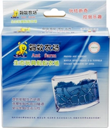 Ta izobraževalni akvarij za mravlje je napolnjen s posebnim, nestrupenim modrim gelom, ki mravljam zagotavlja primerno okolje za kopanje tunelov in hkrati služi kot hrana. Dovolj je, da v gel naredite nekaj začetnih luknjic, vstavite nekaj mravelj in lahko na lastne oči spremljate njihovo delo ter preobrazbo notranje strukture kolonije.