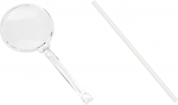 Komplet vsebuje lupo in plastično paličico/slamico za enostavno izdelavo odprtin ter podrobno preučevanje mravljinjih poti.