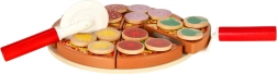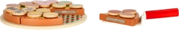 Ta kakovosten leseni set pice prinaša realistično igro kuhanja. Deli so povezani z ježkom, zato lahko otroci pico zlahka »režejo« in ponovno sestavljajo. Barviti prelivi spodbujajo domišljijo ter učenje kombiniranja okusov in videza.