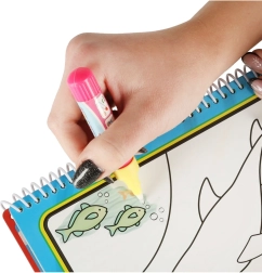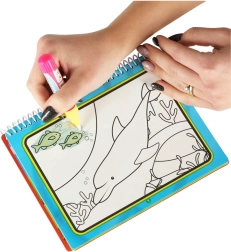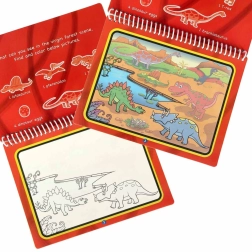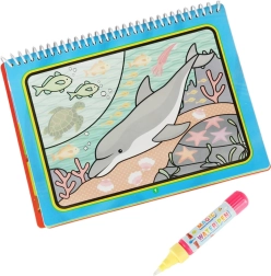 Zvezek vsebuje 4 večkrat uporabne strani v spiralni vezavi. Ko se posuši, slika pobledi in otrok lahko barva znova in znova. Kompaktne dimenzije so idealne za nahrbtnik na poti.