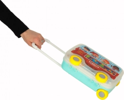 Kovček služi kot shranjevalni prostor in delovna površina s perforirano ploščo. Zahvaljujoč kolesom in izvlečnemu ročaju je idealen za na pot.