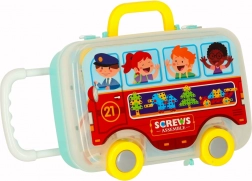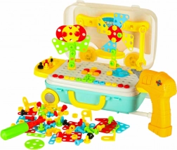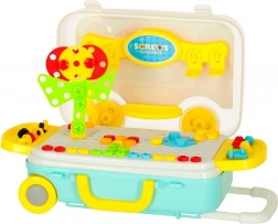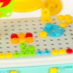 Ta izobraževalni komplet je idealen za male mojstre. Barvne vijake, ploščice in oblike se privija v čvrsto perforirano ploščo – ročno ali z otroškim baterijskim vrtalnikom, ki se vrti kot pravi. Otroci vadijo koordinacijo oko–roka, prepoznavanje barv in oblik ter tehnično razmišljanje.