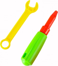 Otroški vrtalnik na 2× AA se po vklopu vrti in olajša privijanje ter odstranjevanje barvnih vijakov. Odličen za realistično igro delavnice.