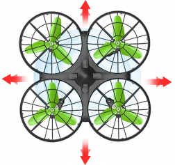 Zaščitni pokrovi rotorjev zagotavljajo varnost med letom in ščitijo propelerje pred poškodbami.