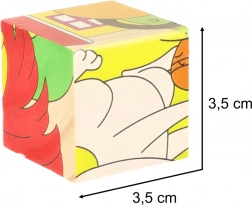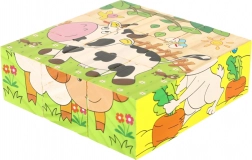 Vsaka kocka je okrašena z barvnimi ilustracijami iz kmetije, ki spodbujajo otroško domišljijo in vidno zaznavanje.