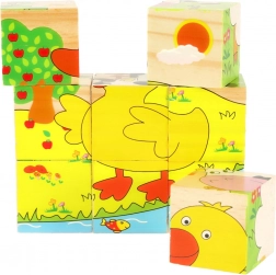 Prinesite čar kmetije v otroško sobo s tem lesenim setom sestavljank. Set vsebuje 9 barvnih kock, ki jih je mogoče uporabiti za sestavljanje 6 različnih kmečkih motivov, vključno s psi, rački, kravami, petelini, zajčki in jagnjeti. Varne in trpežne—kocke so narejene iz naravno poliranega lesa brez ostrih robov, kar zagotavlja varnost med igro.