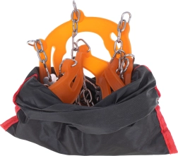 Nedrseča konstrukcija nudi odlične oprijem. Kovinske konice in trpežen gumijast okvir zagotavljajo, da ostanete varno na nogah.