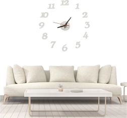 Ta komplet za samostojno montažo ponuja prilagodljivo velikost od 70 cm do 130 cm. Ura je namenjena montaži izključno na gladke površine in deluje na baterije AA, ki niso priložene. Tekoče delovanje kazalcev zagotavlja natančno merjenje časa.