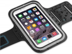 Nastavljiv pašček z ježkom se prilagodi obsegu nadlakti 27–40 cm in telefon drži stabilno tudi pri dinamičnem gibanju.