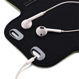 Nastavljiv pašček z ježkom zagotovi stabilen oprijem na nadlakti v obsegu približno 27–40 cm. Mehka neoprenska pena se prilagodi koži, zmanjšuje drsenje in povečuje udobje pri daljšem nošenju. Praktični izhodi za kabel slušalk omogočajo poslušanje glasbe tudi med intenzivnim treningom.