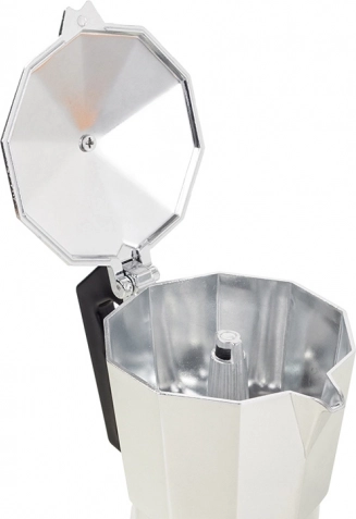 Kavni aparat je izdelan iz lahkega, a trpežnega aluminija, kar ga naredi idealnega za vsakodnevno uporabo v vsaki gospodinjstvu.