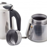 Italijanski nerjavni kavni aparat, idealen za pripravo do 12 skodelic. Izdelan iz visokokakovostnega jekla, primeren za plinske in električne štedilnike.