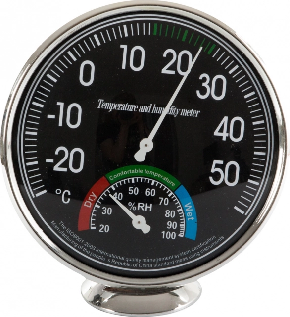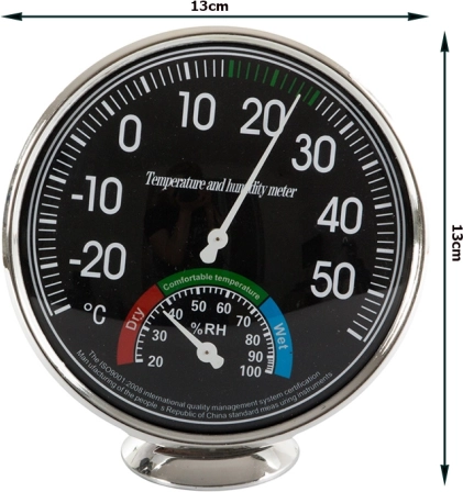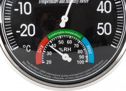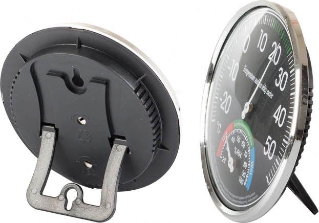 - Opremljena z dvema velikima številčnicama - temperaturna s premerom 11 cm in vlažnostna 4 cm.
