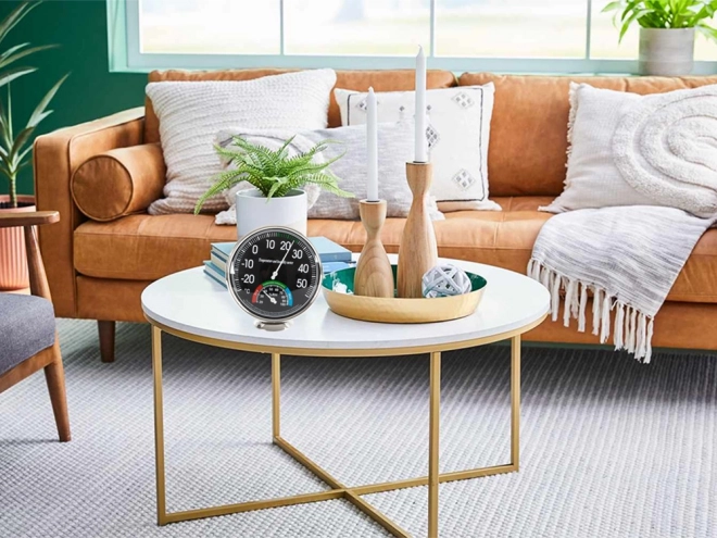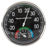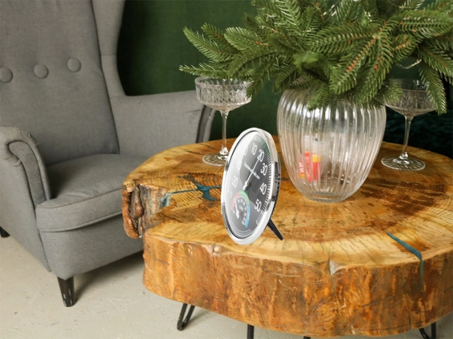Analogni sobni termometer in higrometer je idealen za uporabo tako v notranjih kot zunanjih prostorih. Ponuja pregledne številčnice za natančno merjenje temperature in vlažnosti, kar je pomembno za okolja kot so skladišča, knjižnice ali prehrambne dejavnosti.