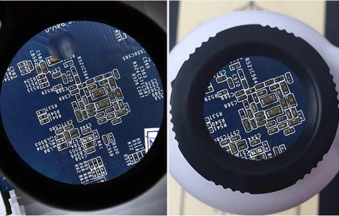 Vgrajenih 12 + 6 LED z izbiro 100 % ali 50 % svetilnosti zagotavlja oster in enakomeren prikaz brez utrujanja oči pri spajkanju, lepljenju in pregledih.