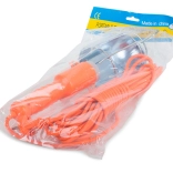 Kovinska zaščitna košara z integriranim reflektorjem ščiti žarnico in zagotavlja širši ter bolj usmerjen svetlobni snop. Trden plastičen ročaj z integriranim stikalom olajša upravljanje tudi z rokavicami.