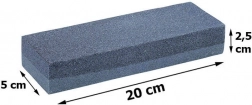 Mere 20 × 5 × 2,5 cm dobro ležijo v roki in ponujajo stabilno oporo pri brušenju. Pravokotna oblika olajša vodenje rezila po celotni dolžini ostrine.