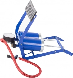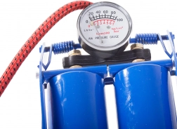 Univerzalna nožna tlačilka z dvojnim valjem zagotavlja do dvakrat hitrejše polnjenje v primerjavi z običajnimi enovaljnimi modeli. Zaradi robustne konstrukcije, preglednega manometra ter gumiranega, ergonomskega pedala je delo udobno, stabilno in varno. Največji tlak 100 PSI / 7 bar pokrije potrebe večine pnevmatik in športnih dodatkov.