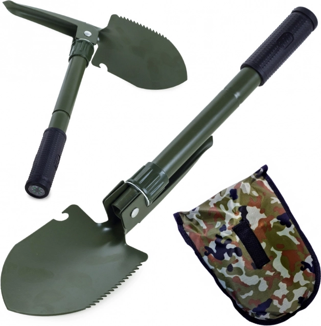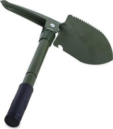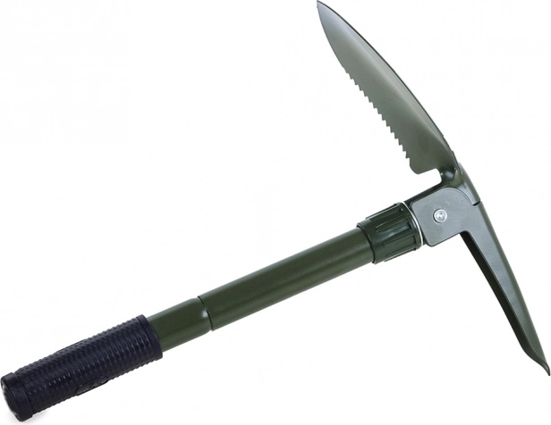 En komplet za številne naloge: lopata/rezilo, kramp, žaga in odpirač. Praktična rešitev za delo na terenu in na vrtu.